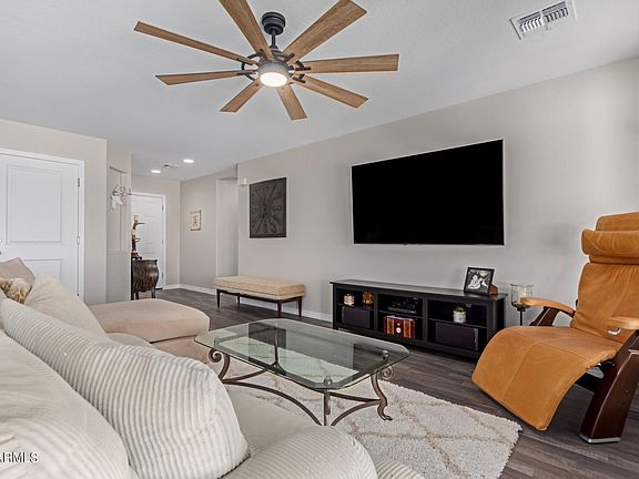 Private Back Yard with a covered patio to enjoy all the amazing views. Awesome open floor plan! Kitchen boasts granite counters and all Stainless-Steel Appliances. Both bathrooms have tiled enclosures with niches and granite counter tops. New vinyl flooring added 3/2024. The Master Bedroom offers a walk-in closet, dual sinks and a large walk-in shower. This property is completely move in ready! Ceiling Fans in all bedrooms and living room. Laundry Room is complete with Washer and Dryer! Water softener included too! Finished 2 Car Garage with insulated door. Plenty of room to add a pool or a workshop!! Just show and sell! No charge for Million-dollar View