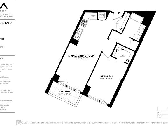 FARE Act Disclosure. This listing is intended to be used by prospective renters and may not be republished without the prior written consent of The Durst Organization. Absent an express written agreement or acknowledgment to the contrary, The Durst Organization and its affiliates (1) do not utilize the services of third-party brokers or agents in connection with the rental of residential apartments and (2) will not assume responsibility for any brokerage fees incurred by a prospective renter. The Durst Organization and its affiliates will not charge or collect fees from a prospective renter except for such fees as permitted by law and disclosed to the prospective renter.