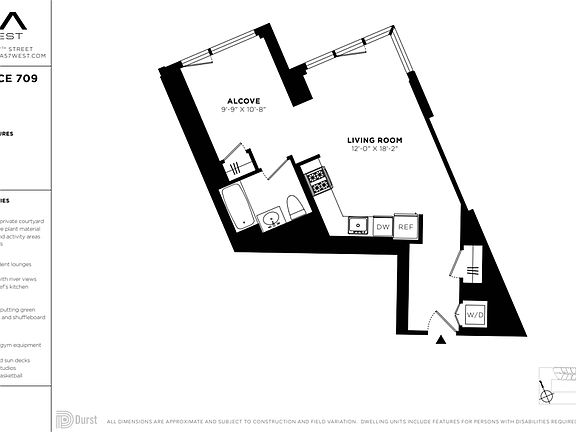 FARE Act Disclosure. This listing is intended to be used by prospective renters and may not be republished without the prior written consent of The Durst Organization. Absent an express written agreement or acknowledgment to the contrary, The Durst Organization and its affiliates (1) do not utilize the services of third-party brokers or agents in connection with the rental of residential apartments and (2) will not assume responsibility for any brokerage fees incurred by a prospective renter. The Durst Organization and its affiliates will not charge or collect fees from a prospective renter except for such fees as permitted by law and disclosed to the prospective renter.