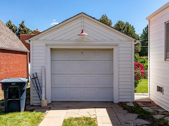 The minute you see this pristine front yard you will see the love and care put into this home. Vinyl siding, composition roof, and the shutters bring great curb appeal to the home. Enjoy the outdoor space from the covered front porch. The grass and rose bushes are all on automatic sprinklers. The main living room is very spacious and has a wood burning fireplace. Original hardwood floors are in the living room, hallway, and bedrooms. The kitchen was an addition with a dining area and tons of cabinet space. Real wood cabinets, pantry, and all the appliances. There are 2 bedrooms on the main level that share the full bathroom. Downstairs is a great area for an art, workout or sewing room. The 3rd Non-Conforming bedroom is in the basement. It does not have windows or a closet. The backyard is just as beautiful as the front, with lush grass, beautiful rose bushes, and a dog pen. There is a 1 car detached garage with automatic opener. Home is cooled with a swamp cooler and heated with forced air. This property is located within a block of Pueblo Community College.