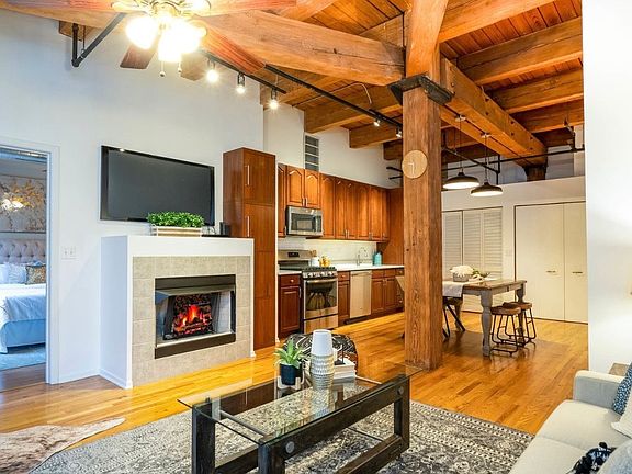 Authentic West Loop loft living. This striking timber and brick home sits in a boutique elevator building in one of the city's most desirable neighborhoods. Soaring 12-foot ceilings, exposed brick, hardwood floors, and wall-to-wall windows fill the space with warmth and light. The open kitchen shines with cherry cabinetry, quartz countertops, stainless steel appliances, and a modern backsplash. The living area features a gas fireplace and two private balconies that extend your space outdoors. The primary suite includes a walk-in closet and a large bath with a double vanity, soaking tub, and separate shower. The second bedroom is fully enclosed for privacy, with an additional full bath and in-unit laundry. Garage parking and storage cage is included. Capitol Hill Lofts offers true West Loop convenience, minutes from Greektown, Metra and Union Stations, and easy access to expressways. Rent includes: Water, Parking, Basic TV/Cable, Basic Internet Access.