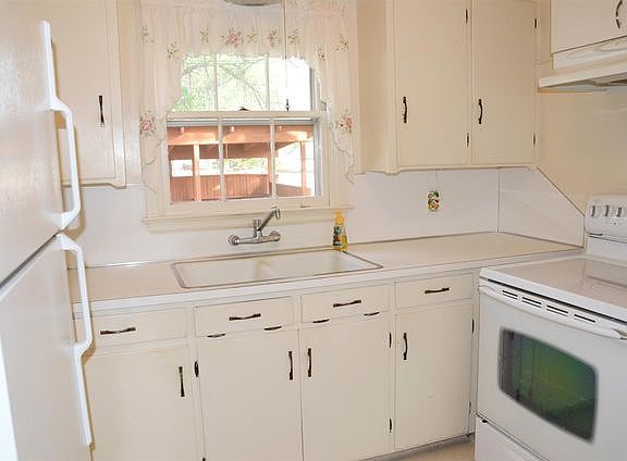 Adorable vintage home w/ delectable character from yesteryear. Graceful archways, stucco exterior, formal dining room, & clean w/ a shady back yard. Nice metal shed. Range/oven, refrigerator, dishwasher, washer & dryer are all included. They work, but are in 'as is' condition. Crown molding, built-in drawers, dormer windows, and being sold in 'as is' condition. One family owned for many years. Lovely large covered deck / a wooden fence. Central air to keep you cool as a cucumber! Slightly irre