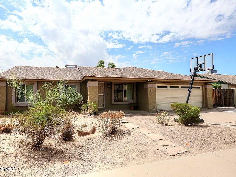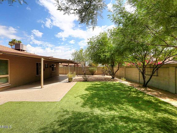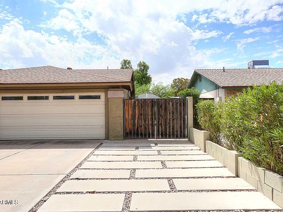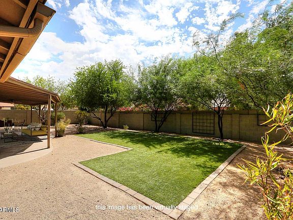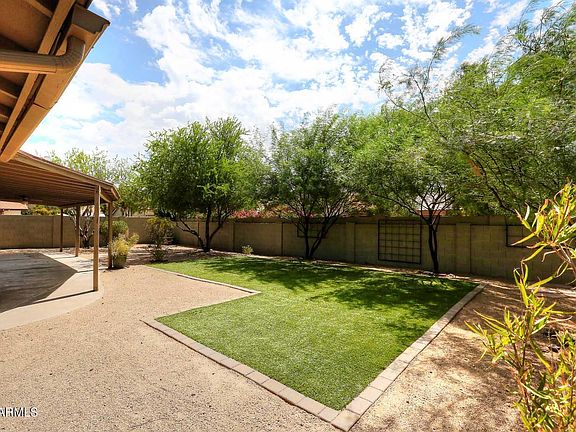 Gorgeous Mesa home with No HOA & RV Gate. Relax on the front porch that leads to a vaulted, cozy living room. The Spacious family/dining area has easy access to a long breakfast bar in the modern kitchen with corian counters. The laundry area is by the kitchen with extra pantry/shelving area. There's a linen & coat closet in the hall & extra storage room in the garage. The back yard has it all - a long, covered patio, 2nd side patio with gazebo, artificial turf, trees & flagstone area. There's also 2 wide side yards - perfect to store your toys & plant a garden. ALSO: The bathrooms have tile surround showers & modern lighting. There's tile flooring & ceiling fans throughout the home. The roof is approx. 5 years new, newer dual pane windows & Fresh interior paint! Visit this home today!