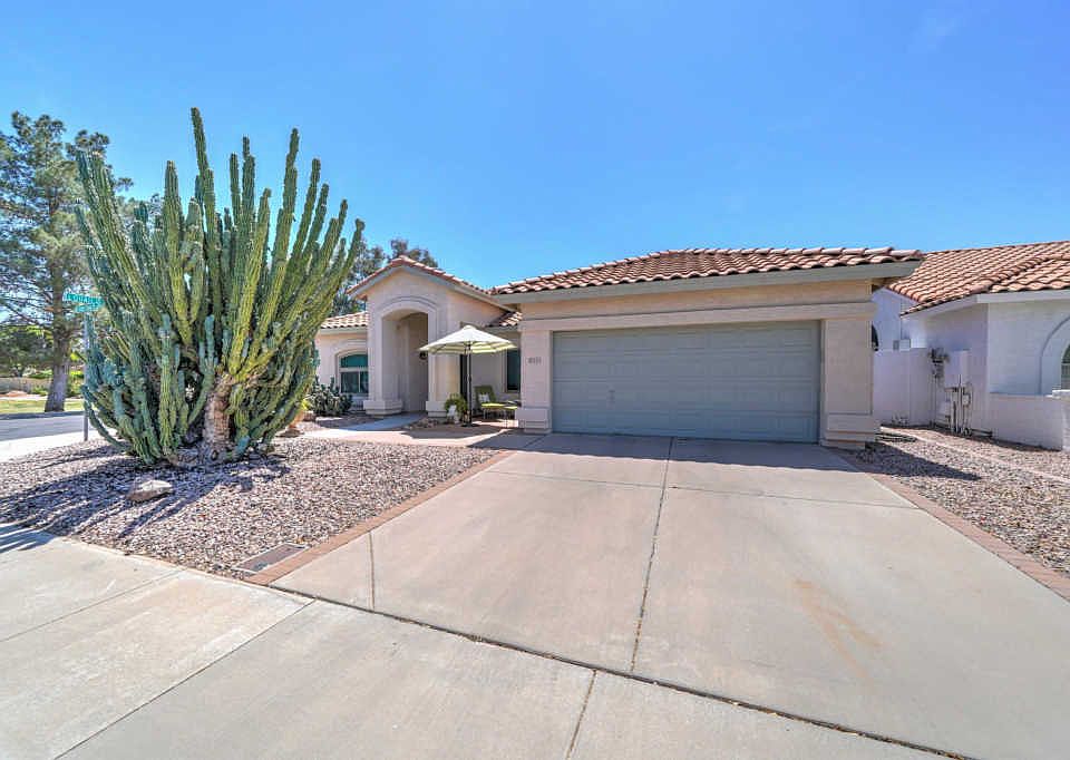Welcome home to Silver Creek Rd. This Gilbert 3/2 with an office is ready for its next owner. Pull up and appreciate the large green space directly across from the home and the low maintenance desert landscaping. Head inside and enter a spacious living space. The vaulted ceilings give the space a nice airy feeling. The office is located off this space behind double doors. Head straight back and enter the heart of the home. This open concept space is the perfect entertaining space. There are wide open pathways throughout the home for easy access. The elegant fireplace is focal point and gives the room a cozy feeling. The giant island and eat in kitchen space are the perfect places to enjoy a quick bite. Ample storage isn't a worry with the walk in pantry. Head down the hallway and pop into the roomy guest bath complete with a jetted tub. The stonework adds a beautiful touch that carries from the tub to the counter tops. The two guest rooms are equal sized with additional storage spaces above the closets. Head into the master suite and prepare to relax. The master has a direct exit to the backyard. The ensuite is full of tasteful storage options that help make the space have more room that you would expect. The walk in shower has a tiled "drying" space attached that was well thought out. The walk in closet has enough space that there shouldn't be a fight over sides. Head outside and walk into the true entertainment space. Flagstone was laid throughout in 2015 to make a consistent flooring. The built in BBQ area has space for a mini refrigerator and a plethora of seating space to hang out with friends and family. The pool is the perfect place to relax in from the heat of the desert. This place is ready to go. Make a SHOWINGTIME TODAY so you don't miss out!!