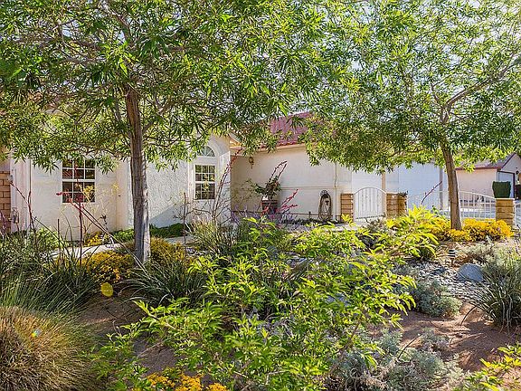 This beautifully maintained home provides 4 bedrooms, den/office, 2.5 bathrooms and comes w/ PAID SOLAR! Appreciate great natural light, vaulted ceilings and tons of storage options throughout. Welcoming living room just off the tiled front entry. Updated kitchen features quartz countertops, modern tile backsplash, plenty of counter/storage space, oversized walk-in pantry, reverse osmosis filtration, instant hot water dispenser & breakfast bar for additional seating. The generous master suite provides ample space, lighted ceiling fan, large walk-in closet & bath w/ dual vanity and luxurious tile shower. All guest bedrooms w/ carpeting, lighted ceiling fans and great closet space. The 608 sqft finished basement (w/ heating & cooling) provides great additional living space that can be enjoyed year round, custom built-in shelving unit and extra storage in the deep walk-in closet. The home also provides den/office, oversized 3-car finished garage, paved RV parking w/ metal overhead cover and double wrought iron gates, 2 evap coolers and newer high efficiency HVAC system & garden space. This home sits on a large fenced lot, ideal for entertaining & provides the perfect space for a pool!