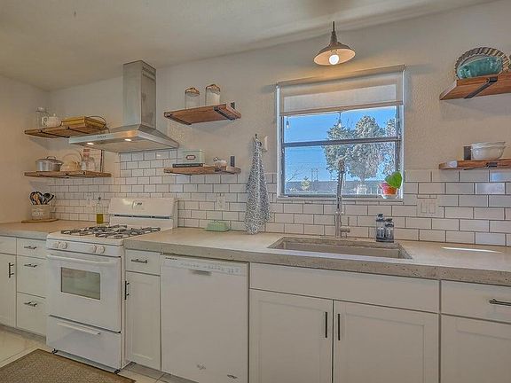 Discover modern charm in this beautifully updated Rio Rancho home. The light-filled interior features an open layout, perfect for comfortable living. The stylish kitchen boasts concrete countertops and classic white subway tiles, ideal for culinary adventures. With three well-sized bedrooms, including a spacious owner's suite with a custom wood vanity, this home offers both style and comfort.Step outside to a massive backyard with a large covered patio, low-maintenance rocked landscaping, storage shed, and dog run. Don't miss your chance--schedule a showing today!