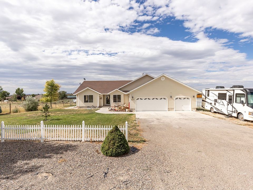 A Single-level 3-bedroom, 2-bathroom home nestled in the heart of Spring Creek, NV. Bask in the panoramic views of the Ruby Mountains from the comfort of your own home, creating a picturesque backdrop to your daily life. The interior is a thoughtfully designed layout, featuring a cozy pellet stove for added warmth during colder months. The kitchen flows into the living spaces, offering functionality and style. Step outside to the covered deck, where you can savor the beauty of your backyard featuring, apple and plumb trees or indulge in outdoor gatherings. The woodshed remains with the property. There is a road to the back of the property that would be an ideal location for a shop. The 2.15-acre lot provides ample space for recreation and gardening, while a 3-car garage ensures convenient storage and parking options. This Spring Creek gem is an opportunity to relish a peaceful lifestyle while still being close to Lamoille Highway for convenience.