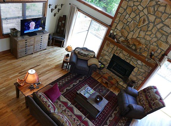 This gorgeous, well maintained home is a must see! Awesome neighborhood with wonderful homes. Open floorplan features a greatroom with hardwood floors, stone fireplace, lots of large windows and a large deck with the most fabulous view! Bedroom and bath on each level. Lovely finished basement with indoor and outdoor access and a large patio. The property has been beautifully landscaped and is paved all the way to the house. So Nice!