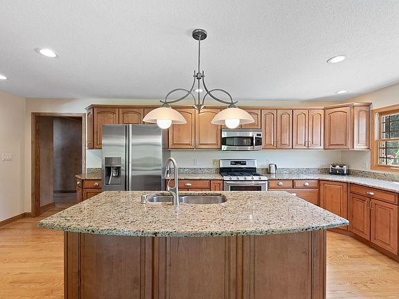 Stunning Estate located in one of the most sought-after locations in Kankakee. Over 4000 sq ft ranch with park-like setting. Large kitchen w/granite opens to the beautiful living room with a vaulted barrel ceiling. 4 bedrooms 3 baths on the main level including a family room, a formal Living room & dining room, 2 fireplaces, and a dedicated office. The Primary suite has an incredible bathroom with a skylight, heated floors, whirlpool & walk-in shower. Primary also has a private entrance to the pool. 1-acre lot. The finished basement has a rec room, bath, bedroom, and kitchen. Great for related living. The second-story bonus room has endless possibilities and is a stunning work of art. It could easily be an art studio, yoga studio, or anything you could imagine. Embrace luxury living in this extraordinary estate that combines elegance, comfort, and endless potential. Don't miss the opportunity to make this dream home your own!