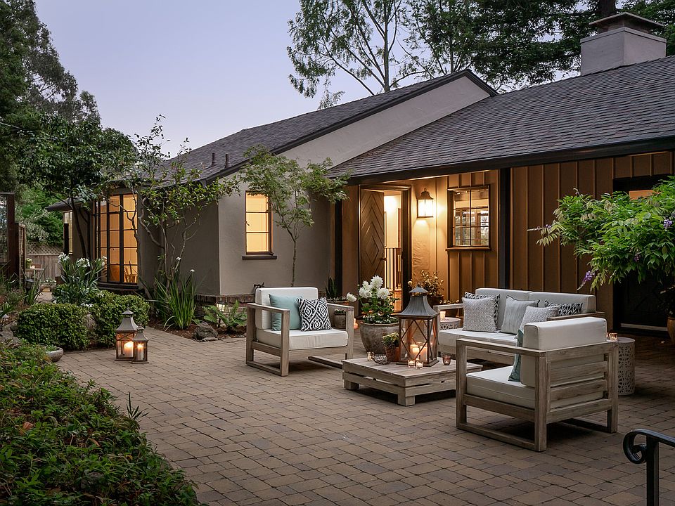 Welcome to 6250 Aspinwall Road, a three plus bedroom two and one half bath secluded private oasis on over 1/2 acre in the East Bay Hills. You enter this updated 1940âs Rambler via a long path and patio;one of 4 on property. Past the formal entry is the glorious living room with its striking whitewashed brick fireplace and wall of multi paned steel mullioned windows. Off the living room is a charming office with a wide bay window. The south facing kitchen is awash in light and features stylish stone counters, stainless steel appliances and leads easily to the stunning dining room complete with hill and city lights views. A lovely master bedroom, stylish marble accented bath, 2nd bedroom and powder room completes the main level. Downstairs is the 3rd bedroom, ensuite bath, family room and laundry. Also with two car garage, terraced fruit trees, winding paths and hammock. Near the bustle of Montclair Village, with EZ access to the freeway.