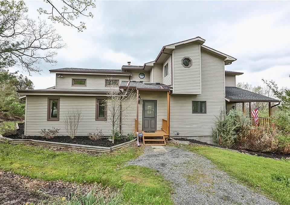 Amazing 4+ bedroom, 2.5 bath contemporary home on 5.5 acres. Once voted the "Most Scenic Road" in Canandaigua. Over 3800 square foot with an open floor plan, eat-in kitchen with family room, formal dining room, lower level rec room with wet bar, refrigerator and pool table with a walkout to a beautiful fenced in backyard. Separate stairs to the loft. Large open deck with hot tub off the kitchen/family room with gorgeous views. Also a covered deck off the formal living room for your morning coffee. Possible Bed/Breakfast, zoned for horses. Public Water