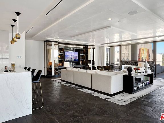 Inspired by the iconic Griffith Observatory perched atop the Hollywood Hills, this fully furnished three-bedroom, five-bathroom offers 5,078sqft of combined class and luxury with astonishing views. In collaboration with top-tier luxury interior design firm, SFA Design, the penthouse features custom bespoke design aesthetics throughout the open indoor spaces, floor-to-ceiling glass walls separating the interior living area from the vast 1,251 square feet of private terraces. Filled by natural light, this penthouse features large open floor plan kitchen, dining, living room with a wine cellar adjacent to a great room that could be used as a screening room. In addition to its spacious living quarters, The Griffith is home to Hollywood's sexiest shower, build and finish with gorgeous views of the sweeping Hollywood landmarks including the famed Griffin Park Observatory, the Capitol Records and of course the Hollywood sign. Furniture can be rented separately.