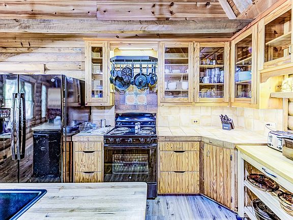This true Log Cabin sits on 66 acres of land. There is a 7-acre private lake stocked with Bass and Bream. The chipped rock driveway was installed 1 year ago and should be good for 15 to 20 years and has a keypad controlled electric wrought iron gate. The deck is made up of Composite boards and has a 25-year warranty, installed 2 years ago. The Home has vaulted ceilings, a Eat-In Kitchen and Living Room area. There is a nice size Loft over the Kitchen which could be an office or guest area. The Master Bedroom contains a large Full body rain shower. The upstairs bath is Jack and Jill style with two separate sink/vanities. The Kitchen has abundant custom cabinet and tiled counter space, a butcher block island, it also contains a Pantry and Laundry area. There is a large, wired workshop on property. Home comes fully furnished with 32 KW Cummings Generator. If you are looking for your own private piece of nature, this is for you. Abundant in wildlife and can be your own Sportsman's Paradise.