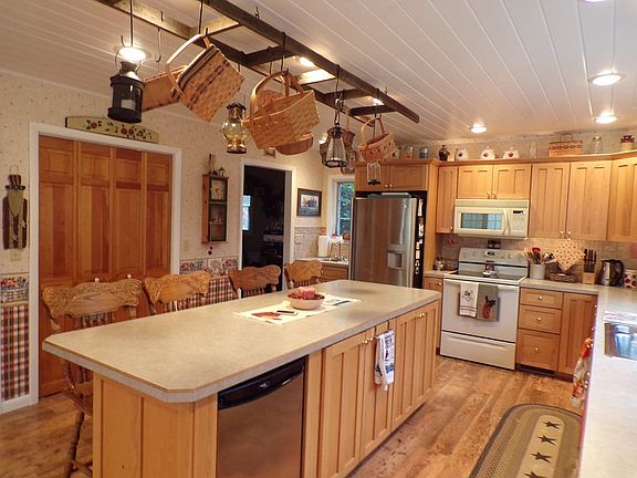 - Amenities: Ceramic Tile Floors, Skylights, Central Vacuum, Ceiling Fan(s), Covered Porch, Deck, Eating Area In Kitchen, Mudroom, Garage Door Opener(s), Walk-in Closet, Master Bath, Rec Lighting, Trash Compactor, Furnishings, Fireplace-Brick, Water Softener Owned