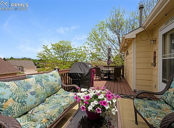 Looking for a Gated Community? Well, here it is. You'll love this Ranch Style Patio Home in the desirable Retreat at Rockrimmon neighborhood. The house sits on a large corner lot and the outdoor living space is private and well maintained. When you walk in from the covered front porch you are greeted with an open floor plan and easy access to the main level bedrooms, living area, kitchen, laundry, and deck. NOTE the laundry is conveniently located on the main level. There are 2 bedrooms and 2 baths on the main level plus another bedroom and bath in the basement. The kitchen includes a casual dining nook with a beautiful bay window. The living room includes built-ins and a gas fireplace, plus a wine cooler that is included. Also in the living room is a walk-out to the beautiful deck-which was recently upgraded and made larger in 2020. The Roof was replaced in 2016. HOA takes care of the gate to the community, snow removal, trash, yard maintenance, etc. HOA does not take care of the exterior of the home or insurance on the home.