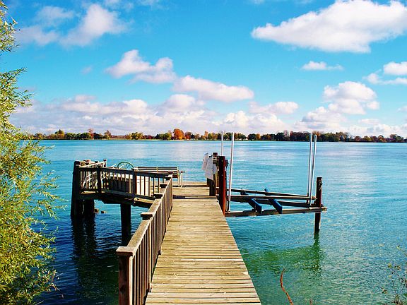 ELEGANT RIVER FRONT HOME WITH GORGEOUS PARK LIKE SETTING! This completely updated home you won't want to miss! Hardwood floors and ceramic tile throughout first and second floors. Beautiful brick fireplace in great room with vaulted ceilings, french doors to cozy porch, and spectacular windows for river views. Spacious open floor plan with formal dining room and kitchen featuring granite counters, decorative tile back-splash, and stainless appliances. Two large bedrooms on entry level as well as two full baths. The 2nd floor master has a balcony for enhanced river views, large walk-in closet, lovely full bath and an extra room with a hot tub. Additional room on the entry level for an office/den adds to living space. Large laundry room and convenient entry/mud room from the attached 2+ car garage. Huge yard with amazing landscaping, patio, an additional 2+ car garage, garden shed, and mature trees all on nearly an acre lot! PLUS enjoy river access from your private dock with boat hoist!