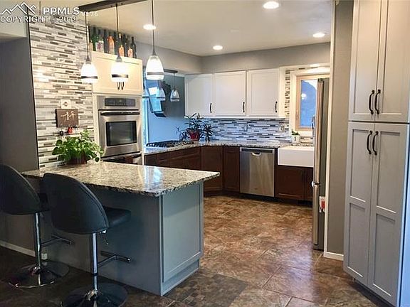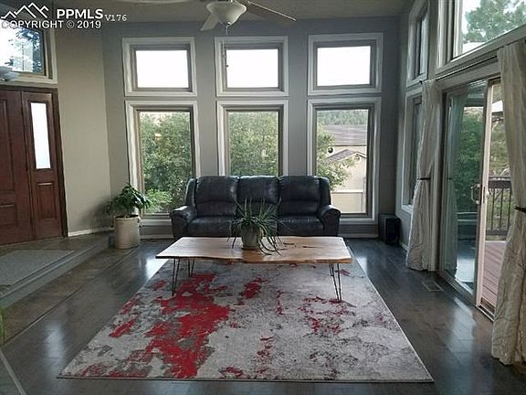 Fantastic Views!! New roof, new vinyl windows, new floors. Backyard is private with trek decking. Move in and start enjoying life. Home is updated throughout. Most rooms have natural light. Inviting front deck welcomes you as you enter the home. Open entry, vaulted ceilings windows line the west and south walls of the living room, Gas fireplace w/mantel & stone hearth. sliding door leads to west deck to enjoy the Pikes Peak views. Private access trail to Pulpit Rock. (Please read Supplemental). Formal dining features tile floor sliding door opens to back deck (very private). Welcome to the dream kitchen. Granite counter tops, double self cleaning ovens, 5-burner gas range, pass through counter, plus breakfast bar. All stainless steel appliances. Main floor bathroom and laundry. Your master suite wing features workout room, office room, 5-piece bathroom, 2 walk in master closets. Slider opens to private deck, hot tub rock walls. Master suite sun deck is located off the workout room with views to enjoy. Make your way upstairs to 2nd and 3rd bedrooms Each have their own walk in closets, spacious vanity, lots of storage. Single over shower bathtub separates the space. It's known as a Jack and Jill bathroom. Finished walk out basement features 4th bedroom, guest bathroom, wet bar, gas fireplace sliding door leads out to covered deck area. Views are priceless from all 3 deck areas of this home. Backyard is very low maintenance, hot tub is located right off the master suite area. Custom gazebo is the center of this very thought out backyard deck area. Enjoy!