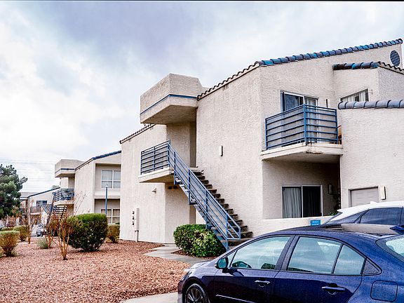 Great Location. Close to the strip. Huge Park right across the Flamingo. Upstair unit attached with a 1 car garage downstairs. Open living room with vaulted ceiling and a real fireplace. Separated Dining area is spacious. Master bedroom with 2 closets and a tub/shower combo. 2nd bedroom with a balcony.