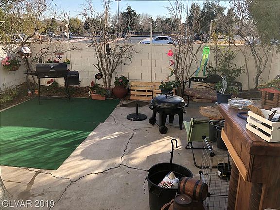 Beautiful end unit downstair condo with 25X20 ft backyard. It features granite counter tops, fireplace, laminate flooring throughout and tile in bathrooms and laundry area. Ceiling fans in living room, kitchen, and both bedrooms. 1 parking garage with additional parking space, plus community pool and spa. Close to park, shopping, restaurants, and minutes away from the strip. It's a must see!