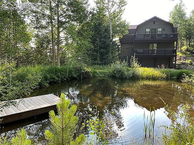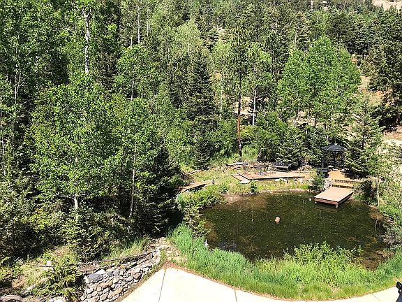 Beautiful two story home situated among an Aspen Grove with its own private Trout Pond!!! No less, it is on top of a waterfall! Almost the whole home has been recently renovated with a 300+ square ft addition to the main level. Renovations include Artisan Granite, Kitchen Cabinets, Appliances, Steam Shower, Radiant Heat Flooring, Carpet through out, lower level Tile, Master Bathroom and so, so much more!!! This Home offers 4 decks, Entertaining Area around the Pond, Concrete driveway, City and Mountain Views, 2nd level master suite (entire level!), 2- car attached garage and so much more!!! Large Master /Suite Level on 2nd floor with huge deck facing East for the city views, bedroom deck facing West looking over the pond, rock formations and mountain views, wood burning stove, sitting area and office area. There is even an exterior locked storage room and dog run. Laundry is located on main level. Water is provided via a natural mountain spring fed cistern with full UV bacterial and a particulate home filtration system. HOA includes Security Gate, Club House and Outside Community Pool. This is a home you do not want to miss!!! Come enjoy mountain community living that is only minutes to the city!