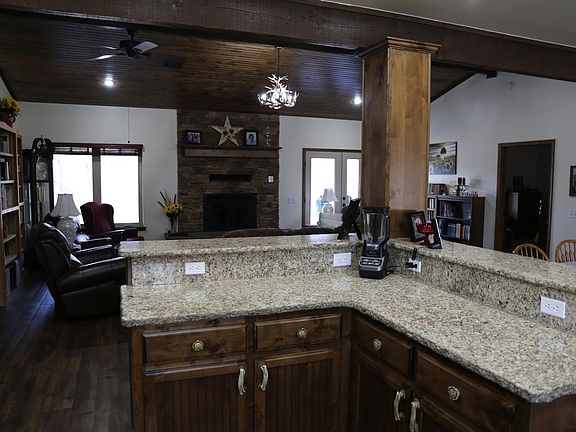 A property that has it all!! This beautiful 3 BR 2 BA home sits behind some trees nearly 1/2 mile off the road. It has a safe room and outside load fireplace for convenience and safety. Outside buildings include a 10X16 garden shed and a 30'X50' shop with concrete floor, a stove and it's insulated. The 120 acres are a mixture of grass(60) and trees(60), it has a nice set of working pens for working cattle and a Spring fed creek in the woods that the deer love! Give us a call for your private showing Today!!