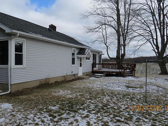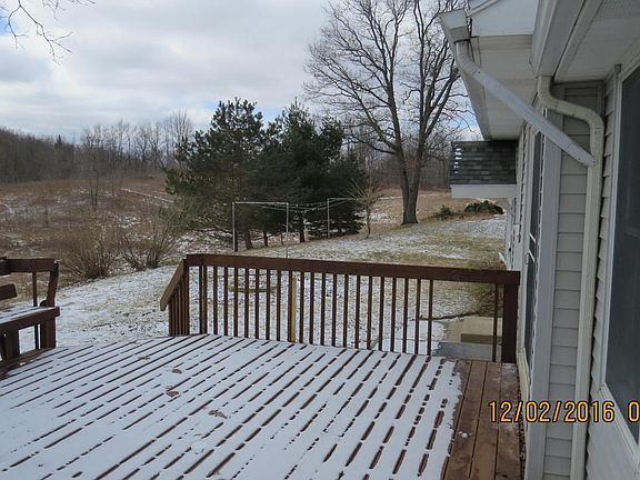 Rare find for 5 acres close to town at this low price. Nice 4 bedroom, living room, dining area and entertainment room over looking large deck with awesome views throughout home in all directions. Nice country setting and room for huge garden. Full bath, kitchen with stove, refrigerator and dishwasher. Large hallway separating the 4 bedrooms and built in storage cabinets. All hardwood flooring. New well 2015 large 2 1/2 stall detached garage and room to add on to put up large pole building. Ni ce dry basement partially finished. Hurry you don't want to miss this one as it will go super fast priced to move now. Some minor items are still being finished. Ask about that.