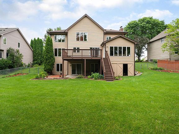 Sun drenched custom two story walk out in sought after Eden Prairie neighborhood Top rated Minnetonka Schools District. Private and level back yard with large deck, patio, and a four season porch with storage underneath. Newer roof, fresh paint, granite counters, stainless steel appliances, vaulted entry, huge windows, two fireplaces, storage galore. Functional floor plan with four bedrooms up and a nursery or sitting room attached to the master suite. The second kitchen on the main level is ideal for entertaining and large meal preparation. The value here is undeniable.