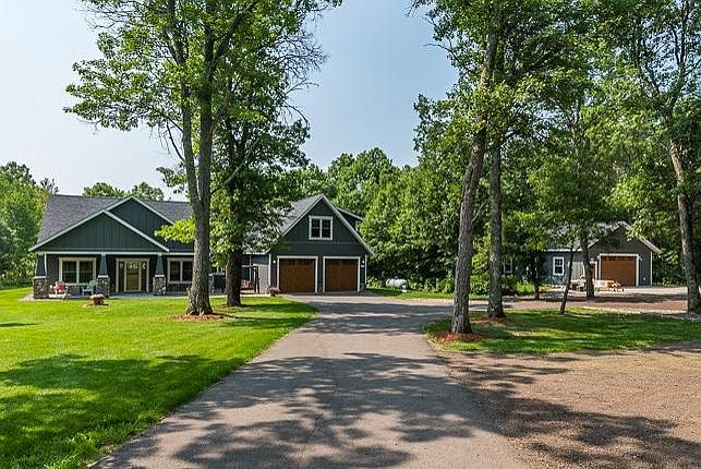 Perfectly situated in the heart of Baxter you will find this four bedroom, three bath executive home on 9+ acres with 322 feet of shoreline on the backwaters of White Sand Lake. This Craftsman home has it all including gourmet kitchen, in-floor heat, gas fireplace, main floor master suite, main floor laundry, mud room, 3 bedrooms and office on the main level, huge bonus room above the attached heated garage, massive 28x40 finished/heated extra garage, tons of privacy and high speed internet!