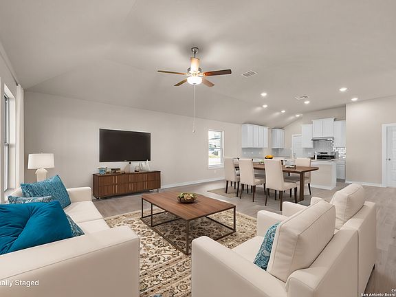 ***READY NOW*** Welcome to 6251 Desert Aloe, a beautifully designed single-story home offering 1,642 square feet of open-concept living space in a layout that blends comfort and functionality. With 3 bedrooms, 2 bathrooms, and a 2-car garage, this home is ideal for growing families or those seeking a smartly planned space with room to spread out. From the covered front porch, step inside to find a welcoming foyer that leads to two secondary bedrooms and a full bathroom-perfect for guests, kids, or a home office. Just down the hall, the open-concept living space unfolds with a modern kitchen, spacious dining area, and expansive family room designed for gathering and entertaining. The kitchen includes a center island and overlooks the dining and family rooms for a truly connected experience. Tucked in the back of the home, the owner's suite is a private retreat featuring a bay window, walk-in closet, and an en-suite bath with a soaking tub and separate shower. A fourth bedroom is located just off the owner's suite, offering added versatility. Step outside to enjoy the covered patio, ideal for grilling, relaxing, or enjoying cool Texas evenings year-round.
