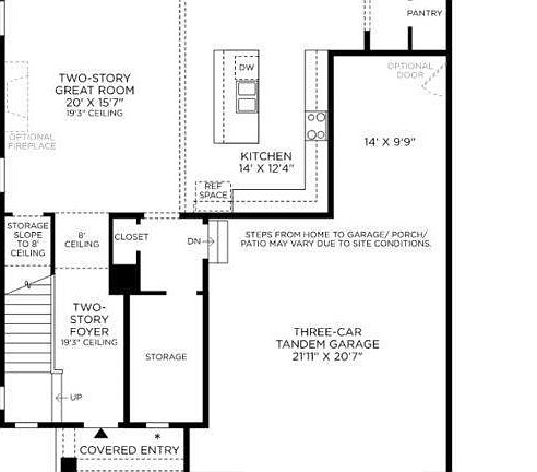 When you enter the Eldorado's impressive Foyer, you'll love the open railing, and two-story ceilings. As you move to the great room, you'll be awed by 19 foot ceilings, stylish and durable WPC flooring, and ample windows, filling the space with natural light. The bright, open-concept kitchen is sure to impress with stainless steel Whirlpool appliances, including a gas range. Cheerful perimeter shaker-style cabinets in white icing finish are complemented with island cabinets in frappe finish. The expanded island features a Kohler stainless steel single-bowl sink, white quartz counter tops, and a convenient pantry. A spacious flex space downstairs can be utilized as an office space, storage, or doggie-dorm room!