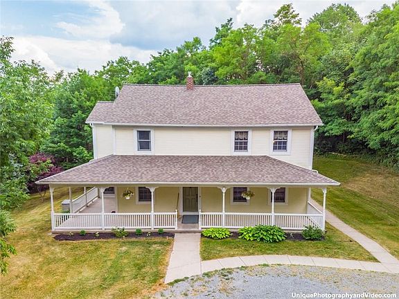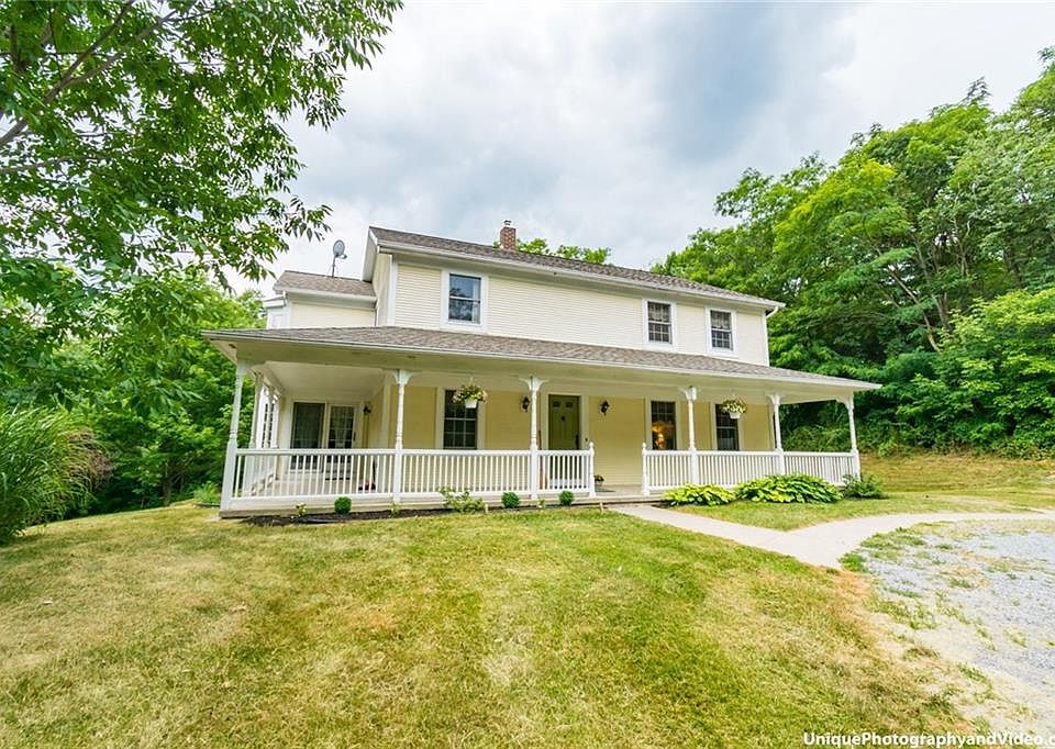 Want To Feel Like You're On Vacation Every Day In This Tucked Away & PRIVATE Colonial?! WELCOME Home! Fantastic Curb Appeal W/ Wrap Around Porch! With Over 5 Acres & Nestled Within A Completely Wooded Yard This SPACIOUS Property Boasts 5 Bed, 1.5 Baths & Almost 2,500 SqFt Which Allows Room To Grow! Open Concept Between Kitchen W/ Tons Of Storage, Breakfast Bar & All Appliances Included! Eat-In Space & Formal Dining Room W/ HARDWOOD Floors!! Sun Drenched Living Room Is Highlighted By Large Bay Window! Half Bath, First Floor Laundry & Office Space Or Opportunity For First Floor Bedroom! FOUR Beds Upstairs & Large Full Bath W/ Shower & Jetted Tub! Walk Out Basement. NEWER ROOF 2014 & NEW FURNACE 2018. Central Vac & Automatic Generator! Don't Miss This One!!!