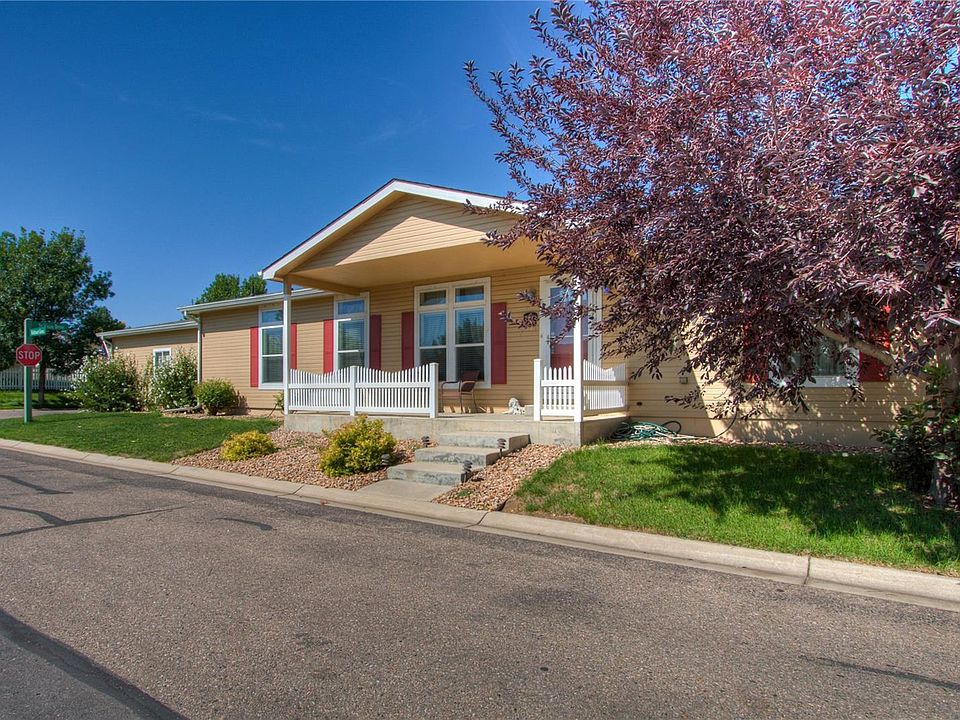 Welcome home to this lovely updated ranch! Granite countertops, wood laminate flooring, open floor plan, corner lot, 3 bedrooms plus an extra office space with a gas fireplace, and an attached 2 car garage with a rare extra parking space. Kitchen has eat in space as well as separate dining room, large pantry, and plenty of cabinets. Master bedroom has an attached 5 piece master bath and large closet with builtins. Community has swimming pool, clubhouse which holds social activities for residents, fitness center, business center, playground, and picnic area. Land lease community.
