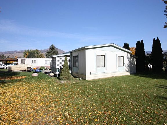 3 bedroom, 2 bathroom home in Dawn Lee Court, a family friendly residential park. Nice setting with beautiful views of surrounding mountains. Largest lot in community. Plum and cherry trees, along with large maple tree to help shade the summer sun. Both front and back enclosed porches. Open concept kitchen. Master bath with large soaking tub. Ample storage with two large storage areas. Parking for up to 4 vehicles.