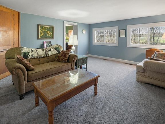 Live the good life in this delightful and surprisingly spacious Greek Revival on 11 acres with pond, mature trees, 3-car garage with workshop/studio above, and a new geothermal heating/cooling system too! Wide plank floors and exposed beams invoke the history of a home well loved. Amazing kitchen with breakfast bar & fireplace opens to a stunning glassed-in porch for dining while gazing over the pond, ducks, herons and wildlife. Formal living and dining rooms, office (4th BR?), family room, full bath and laundry round out the first floor. Upstairs are 3 more bedrooms, another office and 2nd full bath w/jetted tub. Wonderful place for backyard cookouts and pond parties, walks on the mowed paths, or simply enjoying beauty, both inside and out! 2 miles to Trumansburg village!