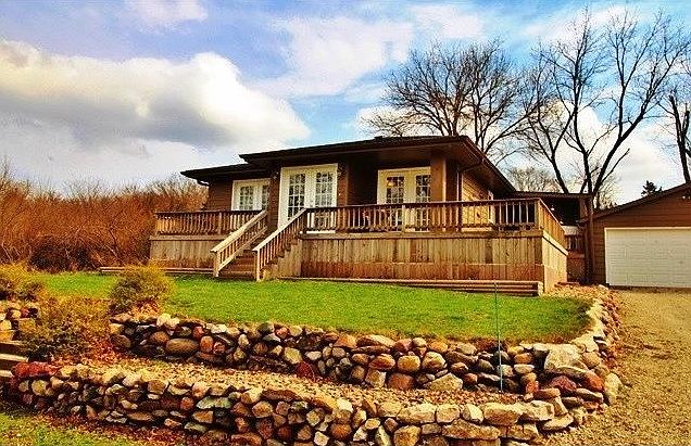 Gorgeous Setting with Lake Views near Sunset Beach This cottage-style offshore home has a great location with lake views, huge backyard, and easy access to Sunset Beach. The wrap-around deck includes a large covered porch, perfect for entertaining and enjoying nature. French and sliding doors let in light and create refreshing indoor-outdoor living. The open main level has an oak kitchen, DR and LR with fireplace and built-ins. There is also a bdrm, full bath with 2 pedestal sinks, and bonus room to use as a bdrm, office or rec room. The finished lower level features a kitchenette, dining area, family room with gas fireplace and laundry/craft room. A nonconforming bdrm, bath with shower, and office area complete this level. Storage is a bonus, with many closets and a three-stall garage with workshop area. This comfortable home has so much to offer, with quality details like Hardi plank siding and tile floors, you won't want to miss it!