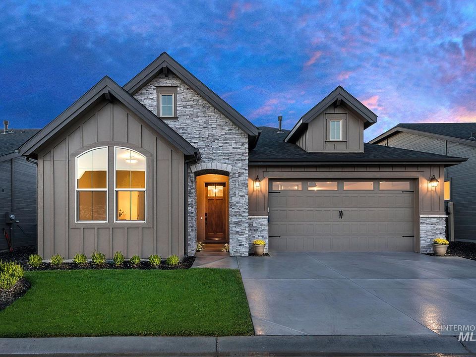 Chandler model | Blackrock Homes. ~ Located in South Meridian's Luxury Home Gated Community of East Ridge Village. This Open Concept floor plan showcases some of the best features of Blackrock's Pinnacle Interior series: abundant trimwork, Quartz surfaces, custom cabinetry with soft-close drawers, and memorable designer lighting. You'll love the casual elegance of the Zen canvas, highlighted by custom gray painted cabinetry in the kitchen. The primary suite offers a quiets getaway with a tiled deck tub and walk-in shower plus a large WIC. The garage is oversized - almost 3 car! Fully landscaped & fenced, private yard. Neighborhood park w/ covered gazebo and a fenced dog park area. Close proximity to Discovery Park, South Meridian YMCA, a new Albertsons and several golf courses. Pics and Tour are similar.