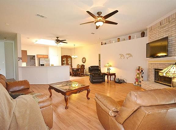 Very well kept 4 bed 2 bath brick home with fireplace on large corner lot! Master bath features dual sinks, separate shower, jetted tub, and his and her closets. Additional bedroom would make a nice office or study! 2 large living areas to entertain guests and a backyard big enough for any occasion. Great neighborhood for a family with plenty of room to grow and play. HOT TUB, china cabinet, kitchen table, and refrigerator are negotiable too!