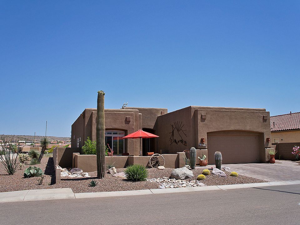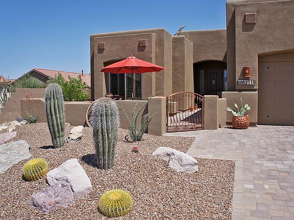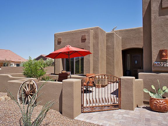 Hacienda style hm-a must see to appreciate!Beautiful upgrades start @ the bricked driveway which leads up to a charming bricked courtyard.Enter the hm thru the beautiful 8\' entry door. Cer floor tile thru-out the hm except for bdrms which have carpet.Ktch has blck GE appl,upgraded tile countertops & 42\'\' knotty alder cabinetry w/custom hardware.Bthrms are upgraded w/tile vanities,custom mirrors,Tuscan Bronze fixtures & lights.Knotty Alder shutters thru-out hm.Garage features inc:4\' extension,entire wall of cabinets w/work bench w/light above,man door off side of garage;laundry sink in garage;3 flourescent clng lights & water softener.Tan vinyl windows.Addt\'l layer of elastek on roof.Sola tubes in hall & ktchn.Beautiful 14\'x20\' casita in the bkyd.Ext\'d patio cover w/out center column.
