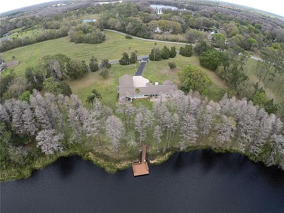 WELCOME TO YOUR LAKEFRONT RETREAT. This beautiful home site is 2.24 acres, with over 250'+/- feet of lakefront. The picturesque setting of this mid century home gives you a sense of tranquility from the moment you enter the gates. The home consists of 4100+/- sq. ft. living area and has 3 bedrooms/ 3.5 baths with a 3.5 car garage. The paver driveway and walk lead to the stairs of the grand entrance. Upon entering the home, a feeling of spaciousness comes over you. All the rooms have 9' and 10' ceilings with hardwood floors throughout and every bedroom equipped with its own en-suite. Masterful architectural designed walls of glass provide abundant natural light and scenic views of the lake at every turn. Great house for entertaining with a huge yard and dock. The Master bedroom has a private sitting area for enjoying your favorite book, or go through the French doors to the private screened in porch. Master bath offers dual sinks, a soaking tub, and oversize walk-in shower, separate water closet. Custom designed kitchen offers granite countertops, solid wood custom cabinetry, custom lighting, Viking appliances and Bosch dishwasher. Breakfast room with built in hutch in kitchen. The dining room has large glass windows that will allow you to enjoy the lake view as you dine. There also is a Butler's Pantry off the dining room. The laundry-craft room leads to the 3.5 car garage. House equipped with a custom designed lighting control system. SONOS sound system throughout and a complete low voltage network. Security lights installed and electronic gate. Are you ready for a great outdoor space of your own and a piece of paradise? Just 30 minutes from downtown Tampa, residents will enjoy top ranked schools, abundant shopping, dining and entertainment, this beautiful pro, and easy access to Land O Lakes Boulevard (US 41), I-75, I-275, Veterans Expressway and Gulf Beaches. Don't miss the opportunity to enjoy property, make an appointment today.