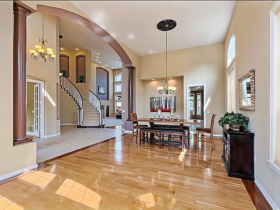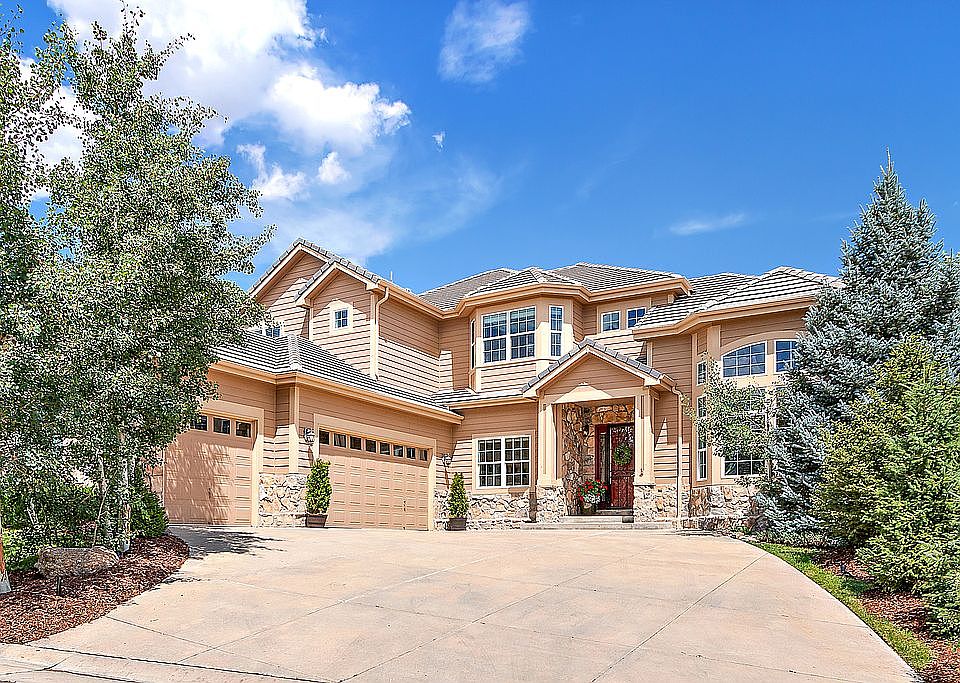 Absolutely Stunning two story executive home in the very prestigious Saddle Rock North golf course community. This remarkable home has incredible style and custom finishes and is perfectly perched on an absolutely quiet cul-de-sac. Enjoy newly refinished extended hardwood floors, a dramatic entry with a 20' soaring ceiling, curved staircase, and spectacular architectural features, to greet you. With 5 bedrooms, 6 bathrooms and 7,359 sq.ft. of quality living space, there is just so much to see and take in... The true gourmet kitchen is a Chef's dream with upgraded stainless steel appliances, beautiful slab granite, and Maple cabinets. The family room offers a vaulted ceiling, amazing floor to ceiling windows that flood the room with natural light, elegant fireplace, ceiling fan, and a built-in entertainment center. The formal living and dining rooms are situated off the kitchen and are perfect entertaining areas. The spacious main floor Master retreat boasts a spa-like 5 piece en suite with a large shower, relaxing soaking tub, double vanity, custom tile, and a cozy 3-sided gas fireplace. You will love the private access to the outdoor living area. The main floor is complete with a private study, huge, guest bathroom and new carpet. The garden level basement is a Masterpiece with Hand Scraped Mahogany Floors, stamped ceiling, and coupled with a full pub-style bar. The magnificent 35' Bar with "Hammered" copper style bar top is sure to impress. The Theater Room offers a 137" Screen, HD projector, surround sound, and custom couch with embedded subwoofer - Wow! The professionally finished basement is complete with a bedroom suite and second guest bathroom. Summer is here..time to enjoy the 500 sq ft. deck that was completely renovated in 2017 and features brown Pecan and Black Walnut etched Evergrain composite deck covered by a Solara louvered patio cover..$20K upgrade! Quality and Finishes are unmatched in this Masterpiece! Award winning Cherry Creek Schools!
