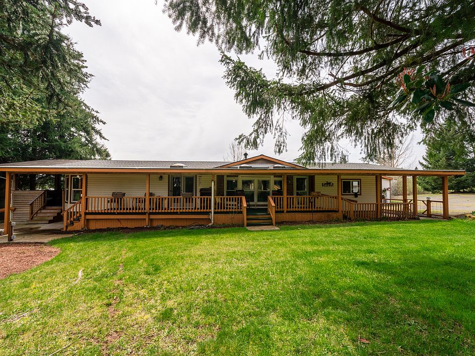 Close In Country on 3.98 acres boasts family orchard w/variety of fruit trees; 12 raised beds; Fenced pasture. 2263 SF Skyline home w/3 bdrms, 3 full baths; +office, inside utility Rm; & bonus rm. Vaulted open floorplan w/all new flooring; most windows & light fixtures replaced. Heat Pump + wood stove; Covered front & back decks for outdoor enjoyment; Beautifully landscaped. DA Garage: 1274 SF General purpose bldng w/2 finished heated offices. 35x15 RV garage w/hook-ups; barn, shed. Minutes to downtown!