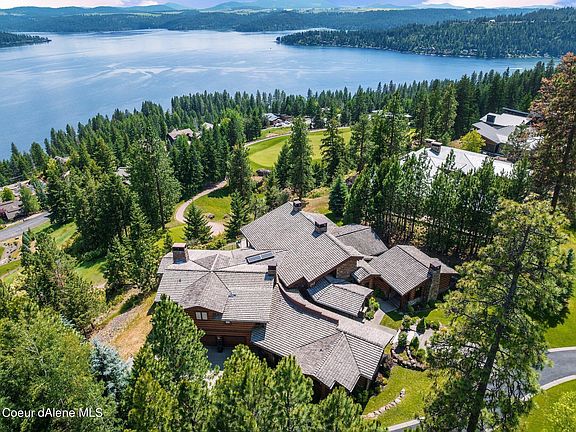 CONTEMPORARY PLATINUM DRIVE ESTATE AT PRESTIGIOUS BLACK ROCK. Prime 1+acre parcel with treed privacy and incredible views of Lake Coeur d'Alene & the surrounding mountains. Boasting 7,000+ SF of living space, the main home includes 5 bedrooms, 5.5 baths plus a separate-entry 1 bed/1 bath guest casita. Open floorplan with soaring ceilings, massive picture windows, climate-controlled wine room with glass enclosure, and dream chef's kitchen. Main level master suite with luxurious ensuite and direct patio access is an absolute retreat. Expansive back patio includes numerous areas to relax and take in the views. Spacious side-entry 3-car garage with ample storage. Conveniently located near the main clubhouse and Club amenities. Membership to Black Rock is not included with purchase, but may be available to apply for and purchase separately.