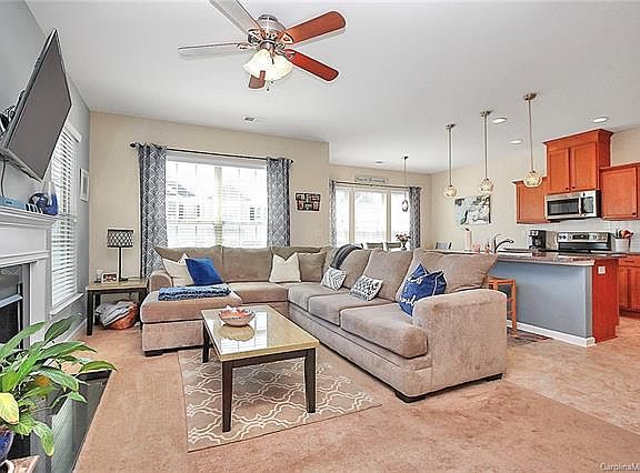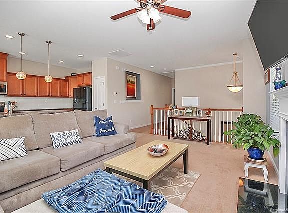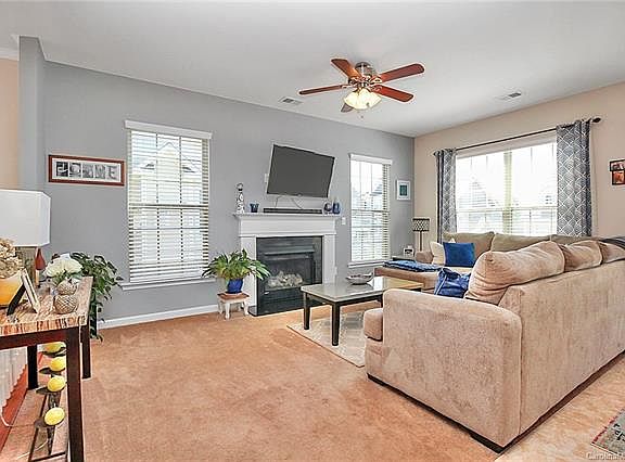 Spacious end unit townhome features open design spaces for entertaining, cooking, work and play. Great natural light, 2 separate living areas or use one for in-home office plus potential for 3rd bedroom downstairs. Kitchen outfitted with SS appliances, convenient island & breakfast bar overlooking dining area which adjoins deck and family room with gas fireplace. Large MBR, oversized tile shower & plenty of closet storage. Additional BR on main. Lower level laundry room, additional bonus/family plus flex room for office, bed, exercise. This floorplan does not disappoint. Located near schools, shopping, I-77.