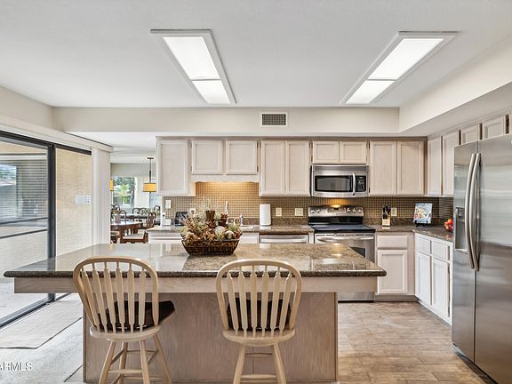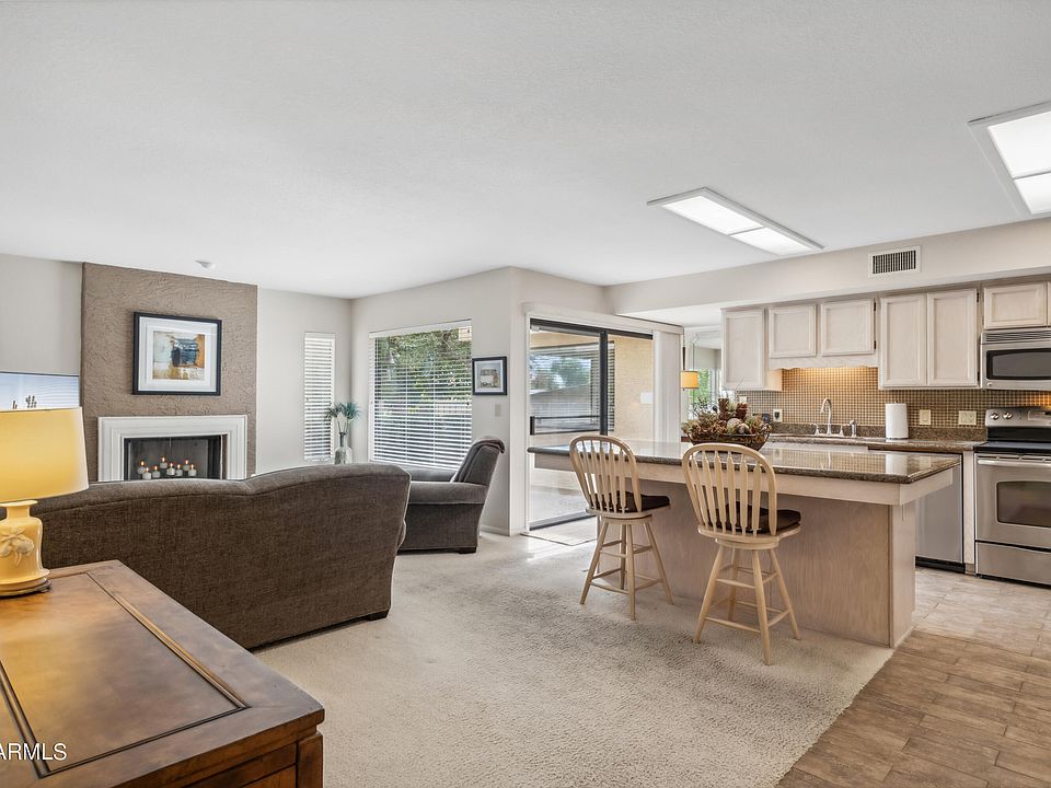 If you yearn to own a home that is surrounded by mature trees, green grass, and open spaces then this is your next home. Located in the desirable patio home community of North Ranch towards the end of a cul-de-sac just steps from the community heated pool and spa. Relax at the breakfast bar with your morning coffee and enjoy any time of day in the large dining area which can accommodate all your family and guests. The cozy family room off the kitchen has a wood burning fireplace for the cooler winters. New Air Handler in 2024, outside main water line replaced in 2024, roof recoated in 2023, garage door and opener replaced in 2023. Granite counters in kitchen with stainless appliances. Bathrooms updated with quartz counters, new faucets, refinished cabinets and new shower and bathtub. The HOA maintains the front landscaping as well as your back patio area, so it makes for a great lock and leave. Enjoy having a glass of wine on the back patio which overlooks the common grassy area. This home is close to great restaurants and shopping at Kierland Commons and Scottsdale Quarter