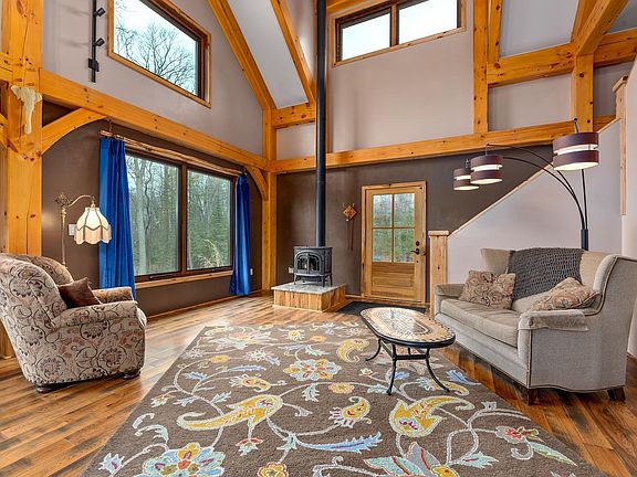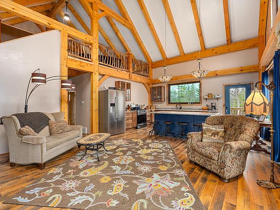 Experience refined Northwoods living in this exquisite custom Timber Frame home, perfectly situated on 11.13 pristine acres just 15 minutes from town. Crafted with timeless elegance, the residence features rich hickory soft-close cabinetry, granite countertops, and extra large custom windows that bathes the interior in natural light. Impeccable woodwork flows throughout the 2-bedroom, 1.5-bath design, blending rustic charm with modern sophistication. Located directly across from the public boat landing on the Rhinelander Flowage/Wisconsin River, enjoy full access to the coveted Rhinelander Chain of Lakes—an exceptional opportunity for luxury lake life in an unparalleled natural setting.