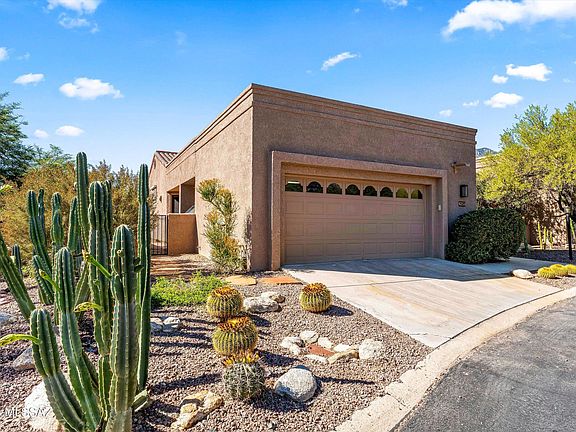 Experience refined desert living in this stunning luxury townhome in the prestigious Ventana Canyon community. The gourmet kitchen features high-end stainless steel appliances, custom cabinetry and a spacious island for entertaining. A cozy great room with a gas fireplace flows seamlessly to the private outdoor patio. The primary suite serves as a serene retreat, complete with a spa-inspired bathroom offering dual vanities, a soaking tub and a walk-in shower. Additional bedrooms provide generous space for guests or a home office, all designed with comfort and style in mind. High ceilings, designer lighting and premium flooring to enhance the overall sense of luxury.