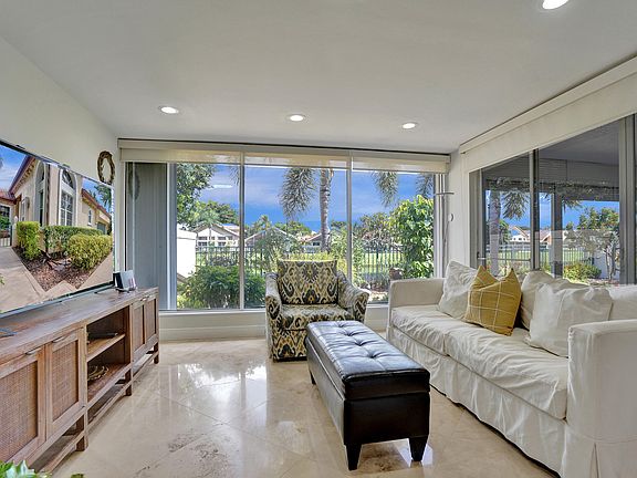 Location, Location, Location! Immaculate One Story, Single Family Home with Volume Ceilings in the highly desirable Gated Community of ''Santa Barbara'', a lavishly landscaped tropical oasis, in the heart of Boca Raton. Located on the peaceful Street in the Community with Gorgeous Lake Views on one of the largest lots in Santa Barbara. 24 inch Saturnia Marble Floors throughout the house, Lead Glass entry door and windows with Plantation Shutters and Custom Roller Shades. The Living area, Family Room and Master Bedroom glass sliding doors open up to a spacious Florida Room with Tranquil Lake Views and a Well Maintained Backyard. Beautiful Large Open Kitchen with Bosch Appliances, Breakfast Area and a large Center Preparation Island with Brazilian Natural Stone Countertops. Two Generousl Two Generously Sized Master Bedrooms with Two Large Walking Closets & Master Bathrooms with Natural Stone Countertops, Dual Sinks & Separate Shower & a Soaking Tub. Third Bedroom/Office/Den with a built-in library. The Shoe Closet in the Guest Toilet could be converted into a full Bathroom. Accordion Hurricane Shutters. Two Zones A/Cs, 5 Ton & 3.5 Ton. A community with 24 hour Manned Gate and Roving Security provides Resort-Like Amenities, Clubhouse, Banquet Hall, Game Room, Fitness Center, Pool, Hot Tub, Tennis Courts & Biking/Jogging routes. Close to Town Center Mall, major Commuter Roadways (I-95 & Turnpike), Gourmet Restaurants, Universities, Colleges, Entertainment, Top Rated Schools and 15 minutes to some of the best Beaches in South Florida.