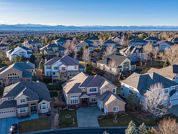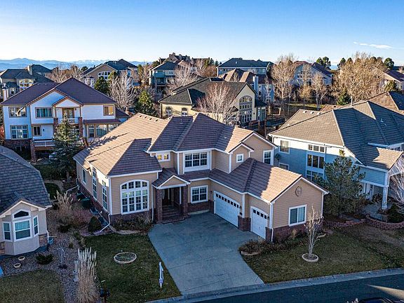You'll love this gorgeous two-story home in the Saddle Rock neighborhood. This home features 5 bedrooms, 6 bathrooms, and 7,152 sq ft of stunning home to enjoy. As you enter this outstandingly spacious home you are greeted by captivating vaulted ceilings which are adorned with Italian crystal chandeliers. The beautiful spiral staircase serves as an elegant location for amazing holiday photos. The wall of windows in the breathtaking open concept living room brings in tons of natural light throughout the main floor. In the spacious kitchen you will find tons of counter and cabinet space as well as a large island and a large peninsula with beautiful granite countertops. The kitchen also boasts a butler's pantry, eat in space, stainless steel appliances, down draft stove, and a paneled refrigerator all near the access to the large concrete patio in the backyard. The spacious main floor master bedroom features double doors that open to the massive concrete entertaining space, large windows, and a luxurious 5-piece bath with a large walk-in closet. The recently professionally finished basement is an entertainer's dream. It includes an oversized wet-bar, a full karaoke setup with television, modern barn doors throughout, surround sound, high ceilings, full bedroom with en-suite, modern finishes, and a movie theatre. The second-floor level boasts 2 bedrooms with a jack-and-jill bathroom and a 3rd bedroom with an en-suite. Additional features of the home include; tankless water heater, large main floor laundry room with sink, quite exhaust fans, oversized modern fan, large formal dining area, sitting room, energy efficient LED lighting throughout home, smart thermostat, bright main floor office, and attached oversized 3 car garage. Truly an amazing property in a great family-oriented community and near trails, parks, highways, restaurants, entertainment and in the cherry creek school district. Bring your clients today!
