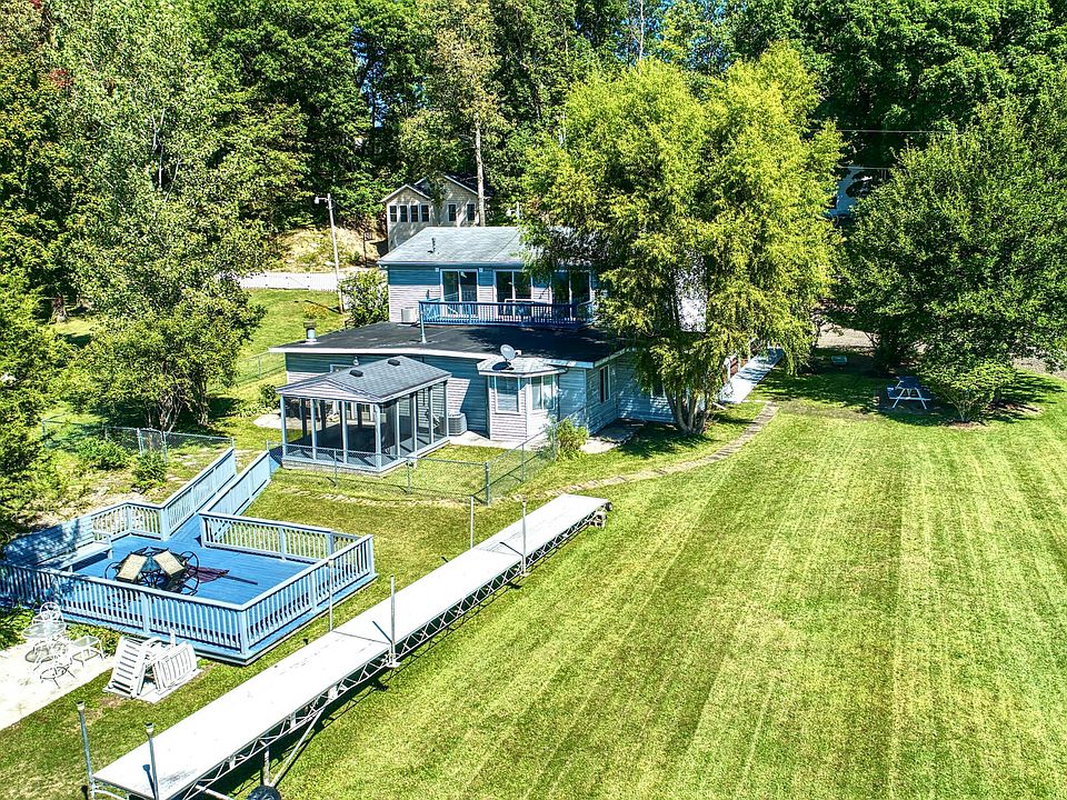 150' LAKE FRONTAGE AWAIT YOU ON THIS 1/2 ACRE LOT WITH GORGEOUS VIEWS ON THE BEST KEPT SECRET IN SW MI-PARADISE LAKE. This home has been completely renovated from top to bottom. Two new furnaces & A/C, flooring, paint, & new fixtures to start with. The main floor has a large open kitchen with granite island & bar seating for 8 and dining area with a bay window that leads into the large living room with a new marble fireplace. Two large bedrooms and 2 1/2 baths complete the main floor. The upstairs features a huge MASTER SUITE, with skylights, ceiling fans, walk in closet, large bathroom with tub and shower, and a 26' long walkout deck overlooking looking the lake. LAKESIDE, has a 11 x 13 screened in porch and a 13 x 23 patio area. The large lot is great for games and other activities and other activities and part of the lot is fenced in for your pets or little ones. PARADISE IS A SERENE LAKE THAT IS ALL SPORTS, 2 HOURS FROM CHICAGO AND 30' TO NOTRE DAME.