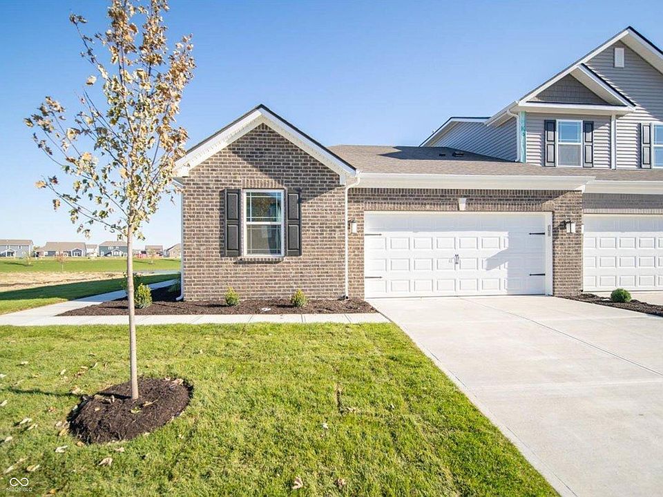 New Quick Move-In by D.R. Horton! This low maintenance single story Columbia townhome in the Towns at Trailside features 2 bedrooms, 2 full baths and an ideal open layout. Enjoy entertaining while guests gather at the luxurious kitchen island, in the breakfast nook or spacious great room. Luxury abounds with a long list of features including 9 foot ceilings, 42 inch cabinets, quartz countertops, durable laminate flooring, luxe shower in main bath and more. The split bedroom plan offers privacy for guests. Finished 2 car garage provides added insulation for Indiana winters. Enjoy amenities such as a clubhouse, pool, fitness center, bocce, tennis, pickleball and basketball courts, community gardens, extensive trails connected to the Big 4 Rail Trail and more. Home includes America's Smart Home Technology featuring a smart video doorbell, smart Honeywell thermostat, Amazon Echo Pop, smart door lock, Deako plug 'n play light switches and more.